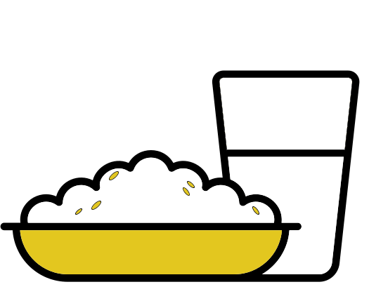 Hidangan makanan berzat tinggi seperti nasi bersama ayam dan kekacang. Turut diagihkan bersama minuman yogurt ‘ayran’.