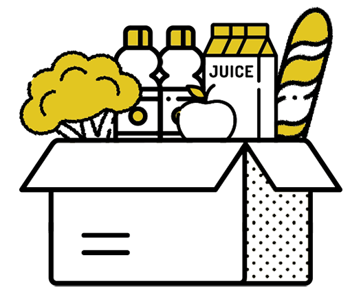 Setiap kotak makanan mengandungi bahan asas seperti beras, minyak, bijirin gandum, pasta, makanan dalam tin dan lain-lain.